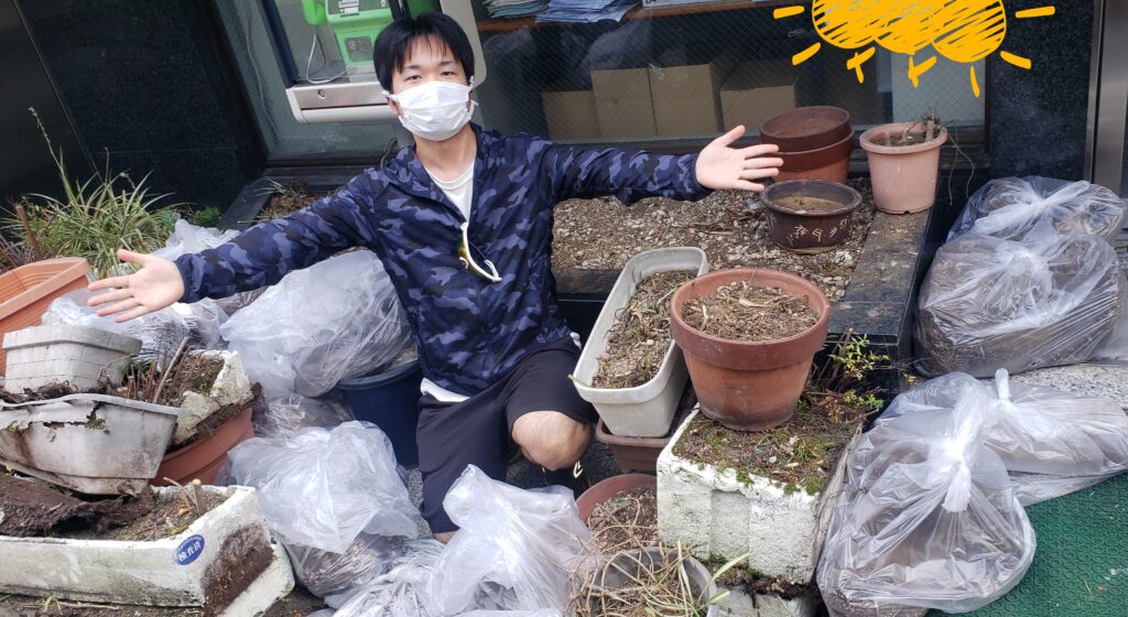 ・大量のプランター土や土嚢袋