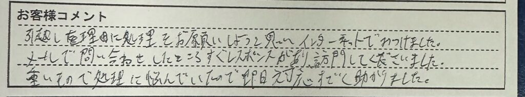 【引越しを理由に処理をお願いしようと思い、インターネットでみつけました。